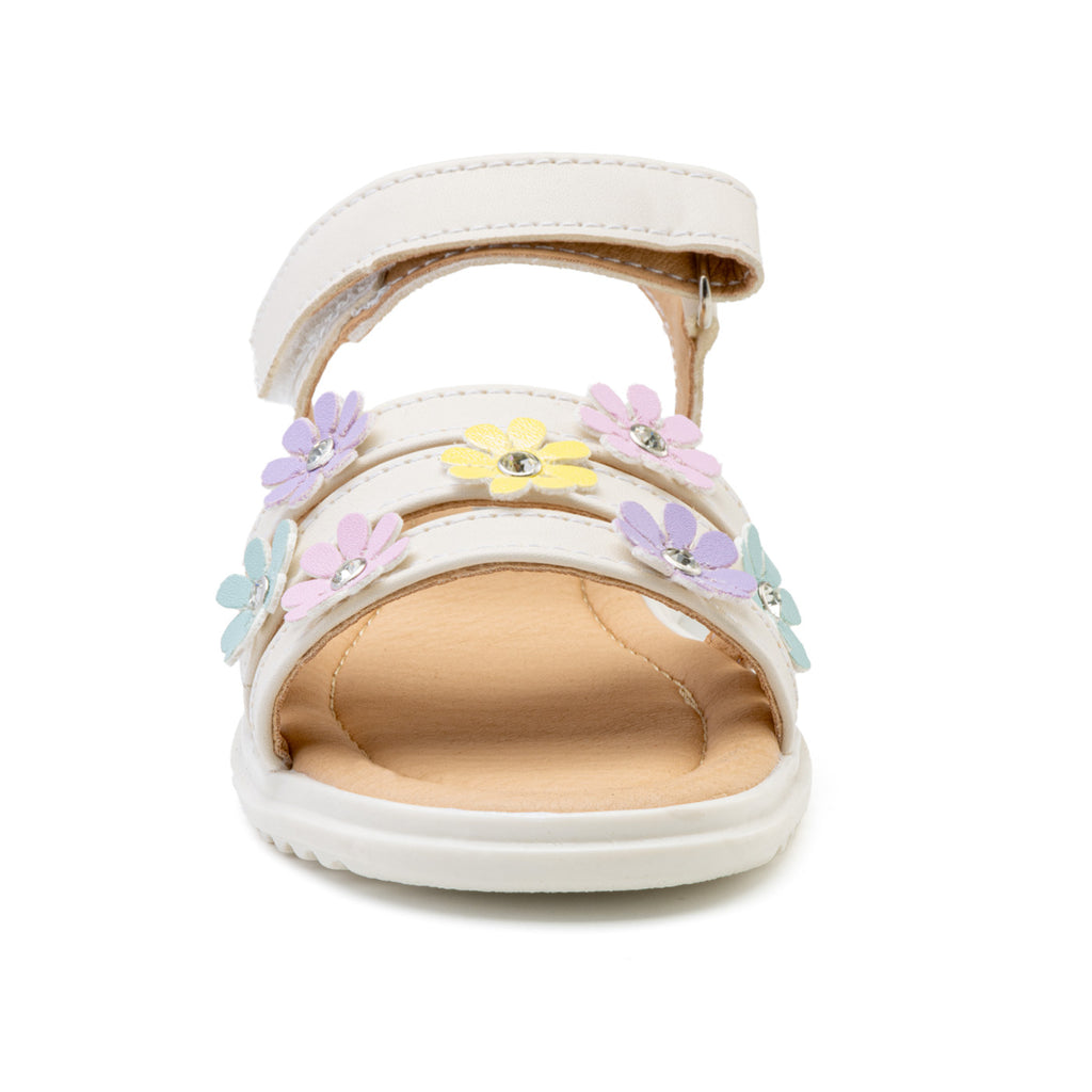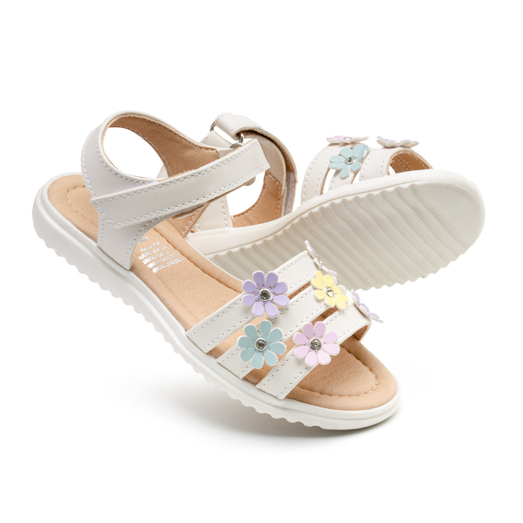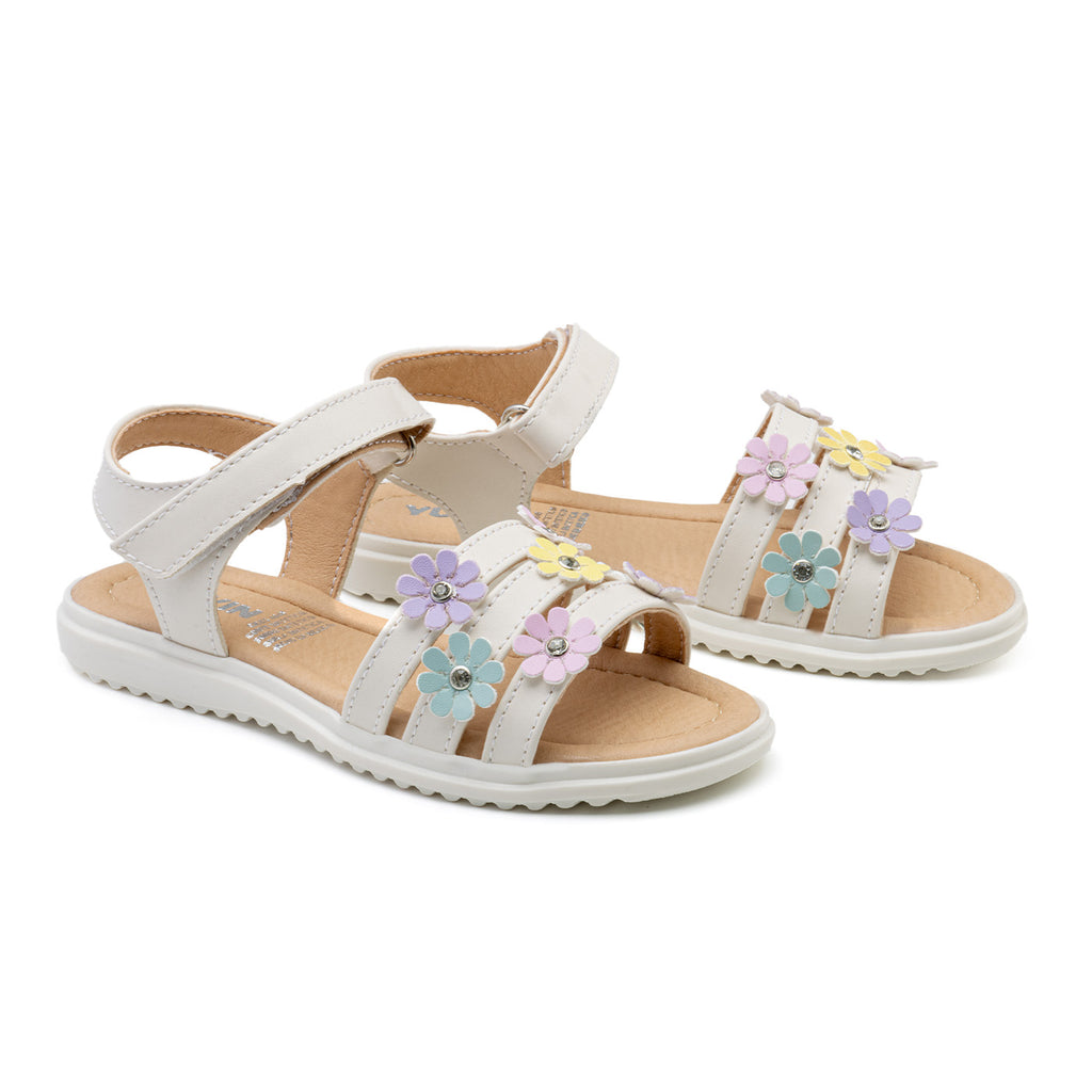 Esta sandalia infantil está diseñada para las niñas que disfrutan de los detalles delicados. Con flores en tonos pastel y toques brillantes, es perfecta para complementar cualquier look veraniego con frescura y ternura.