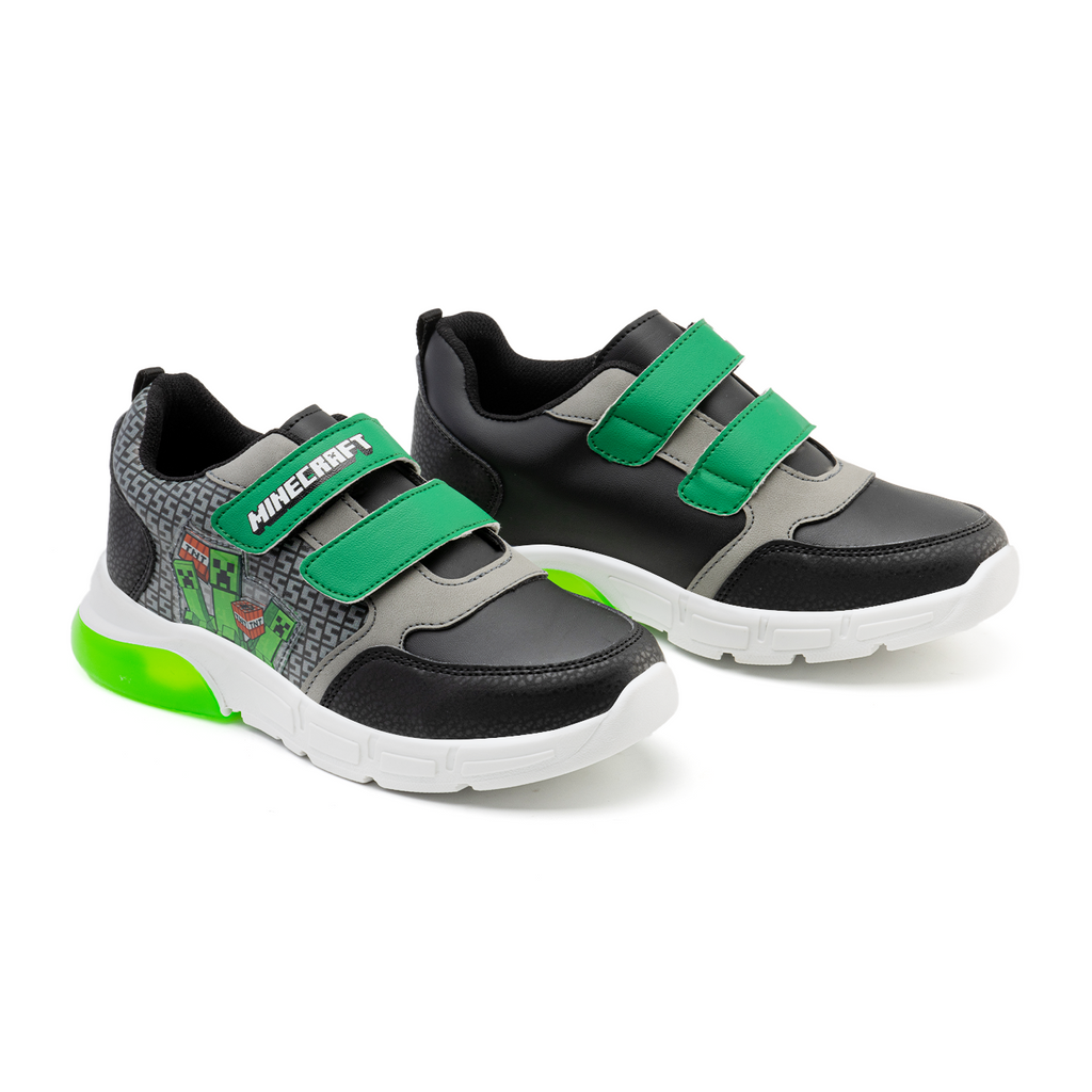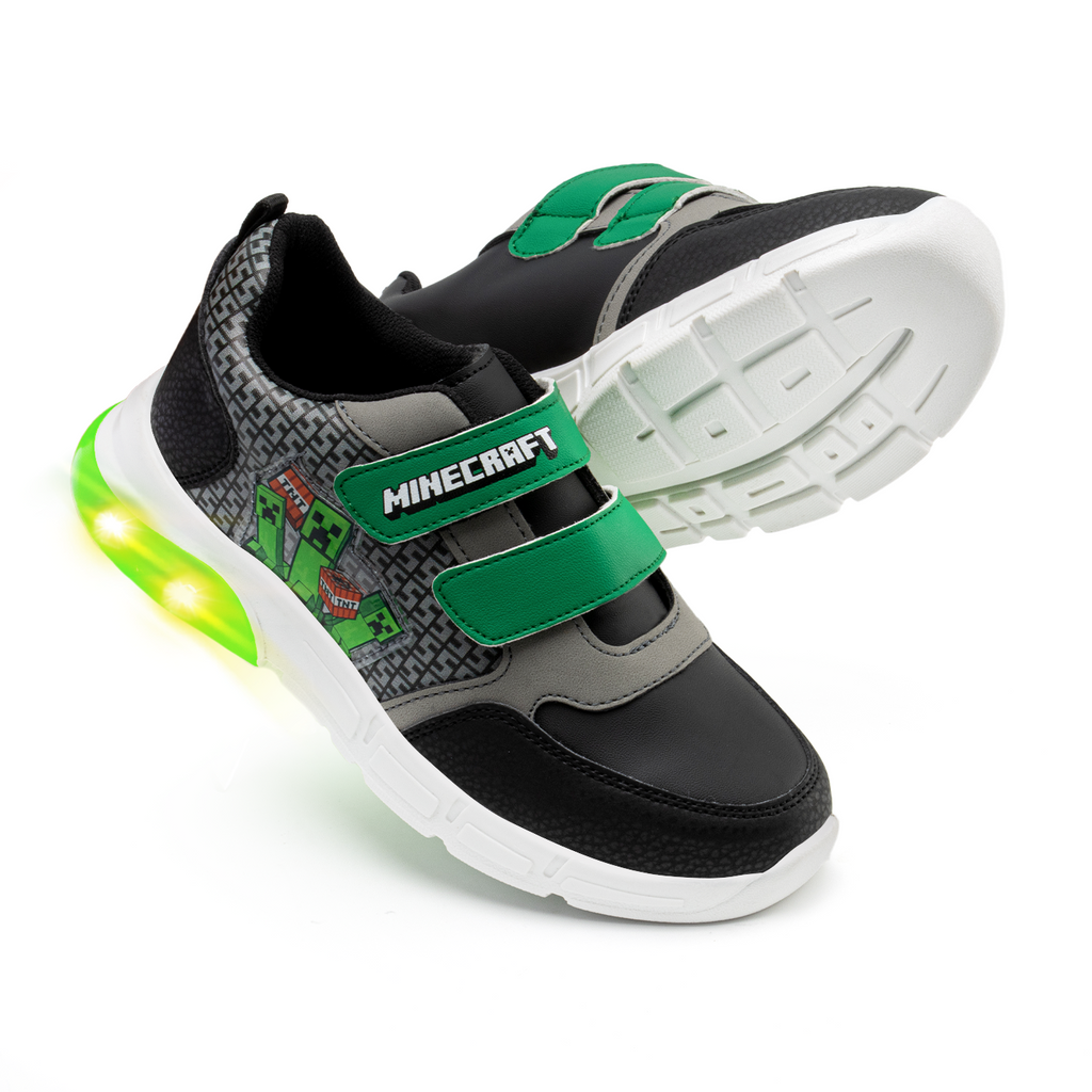 Este sneaker con luces LED hará que cada misión cobre vida para los pequeños exploradores del mundo pixelado. Su diseño mezcla materiales sintéticos durables en tonos gris, negro y verde, con detalles gráficos de Creepers y bloques de TNT que destacan en cada movimiento.
