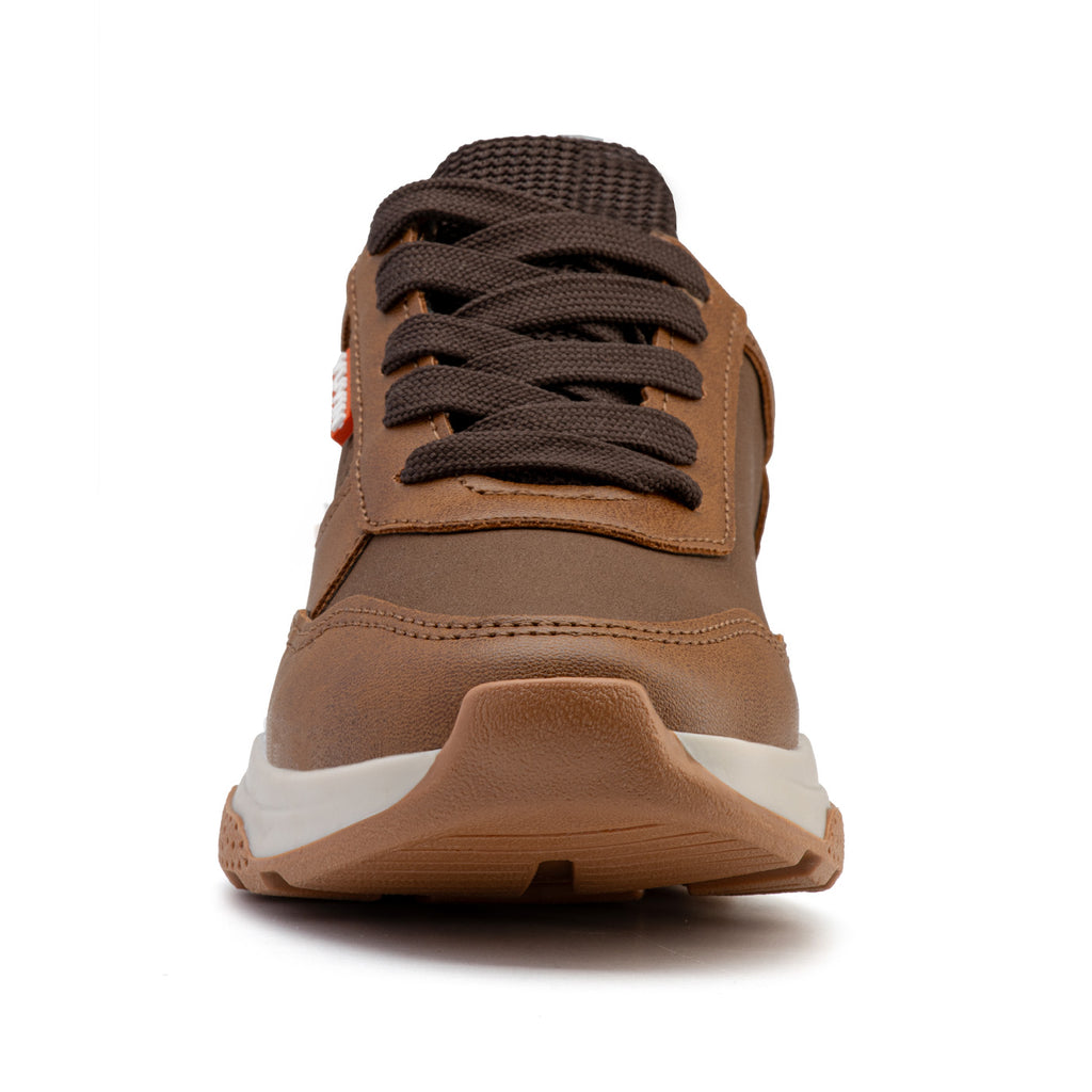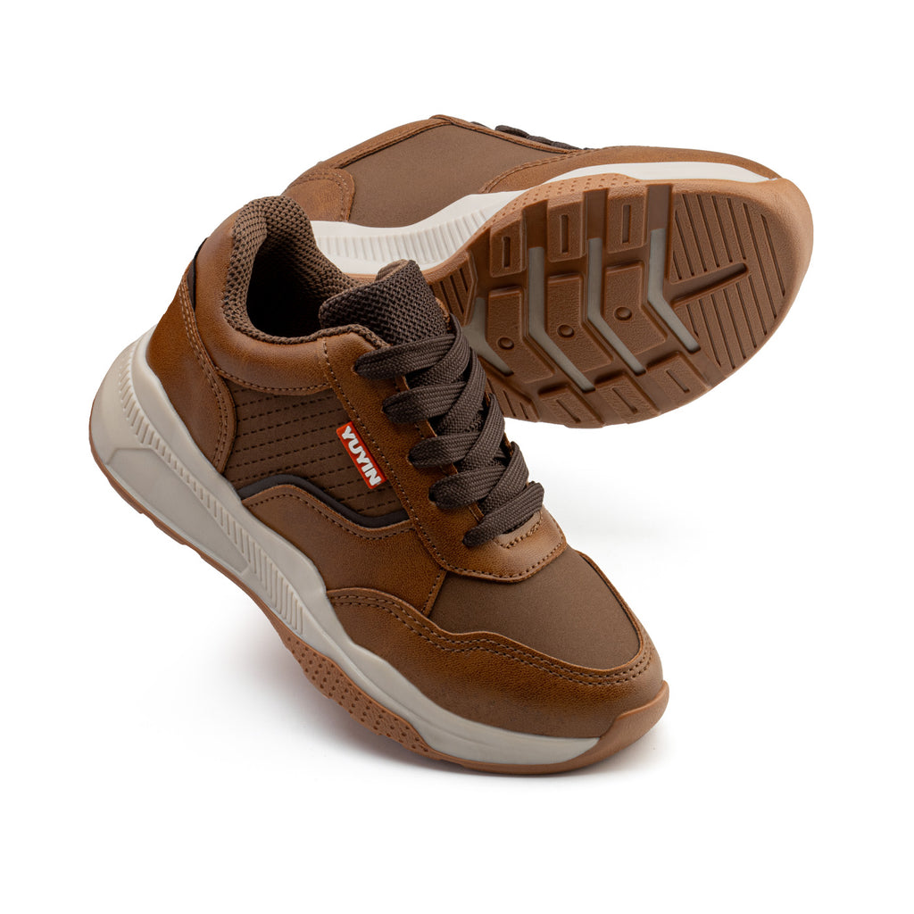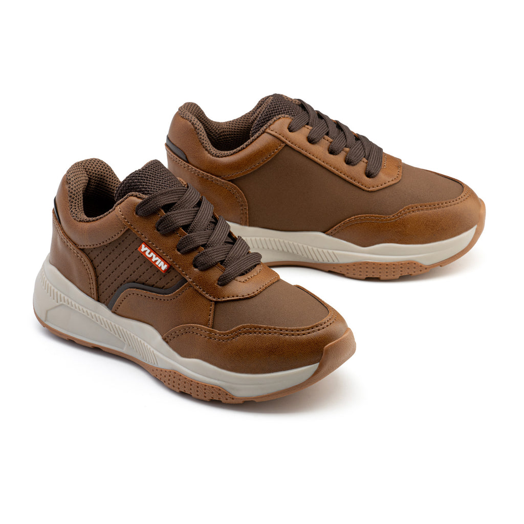 Este sneaker urbano en tono cajeta es la opción ideal para el día a día. Su diseño moderno combina paneles con diferentes texturas y una suela robusta, lo que lo convierte en un calzado versátil y con mucha personalidad. Perfecto para niños que buscan un look casual sin renunciar a la comodidad.